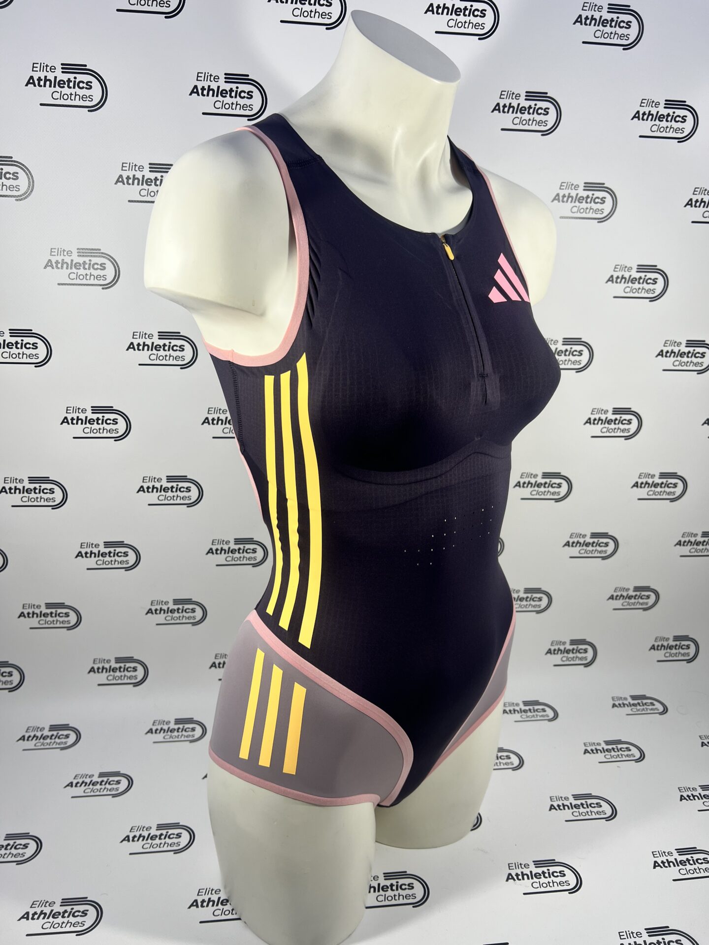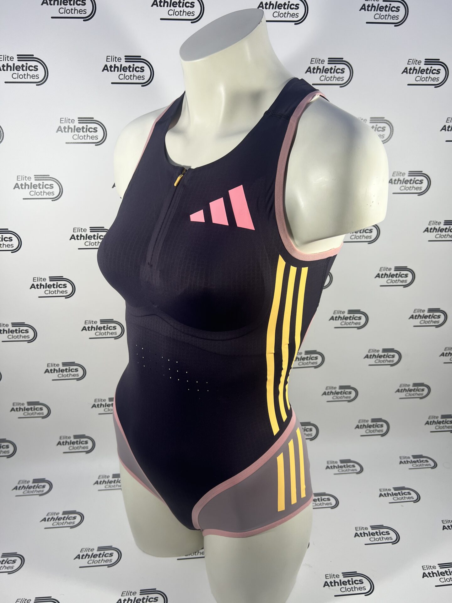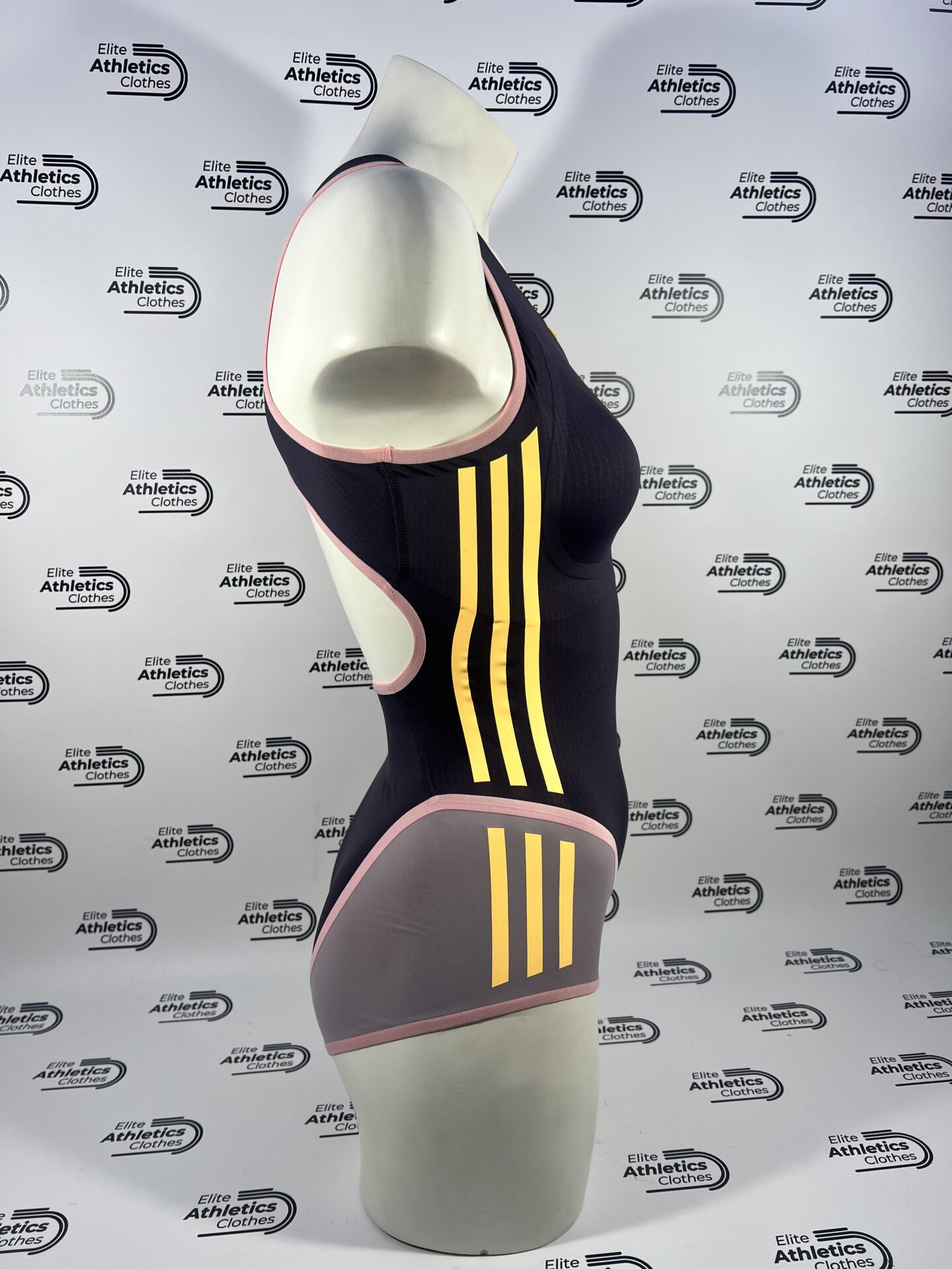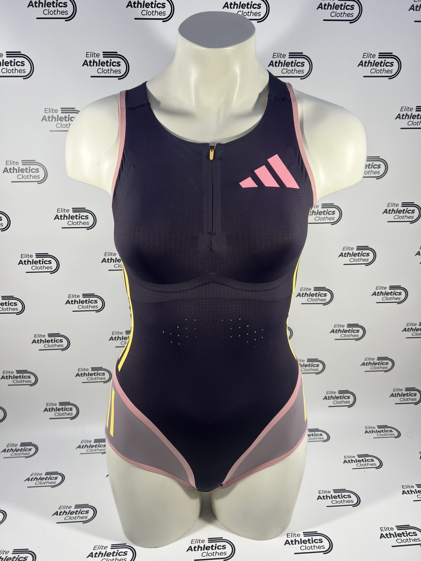 Adidas Pro Elite 2024 Women Sleeveless Speedsuit worn by Adidas Sponsored Athletes during 2024 season.