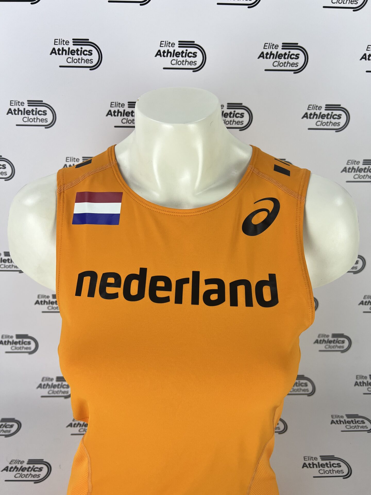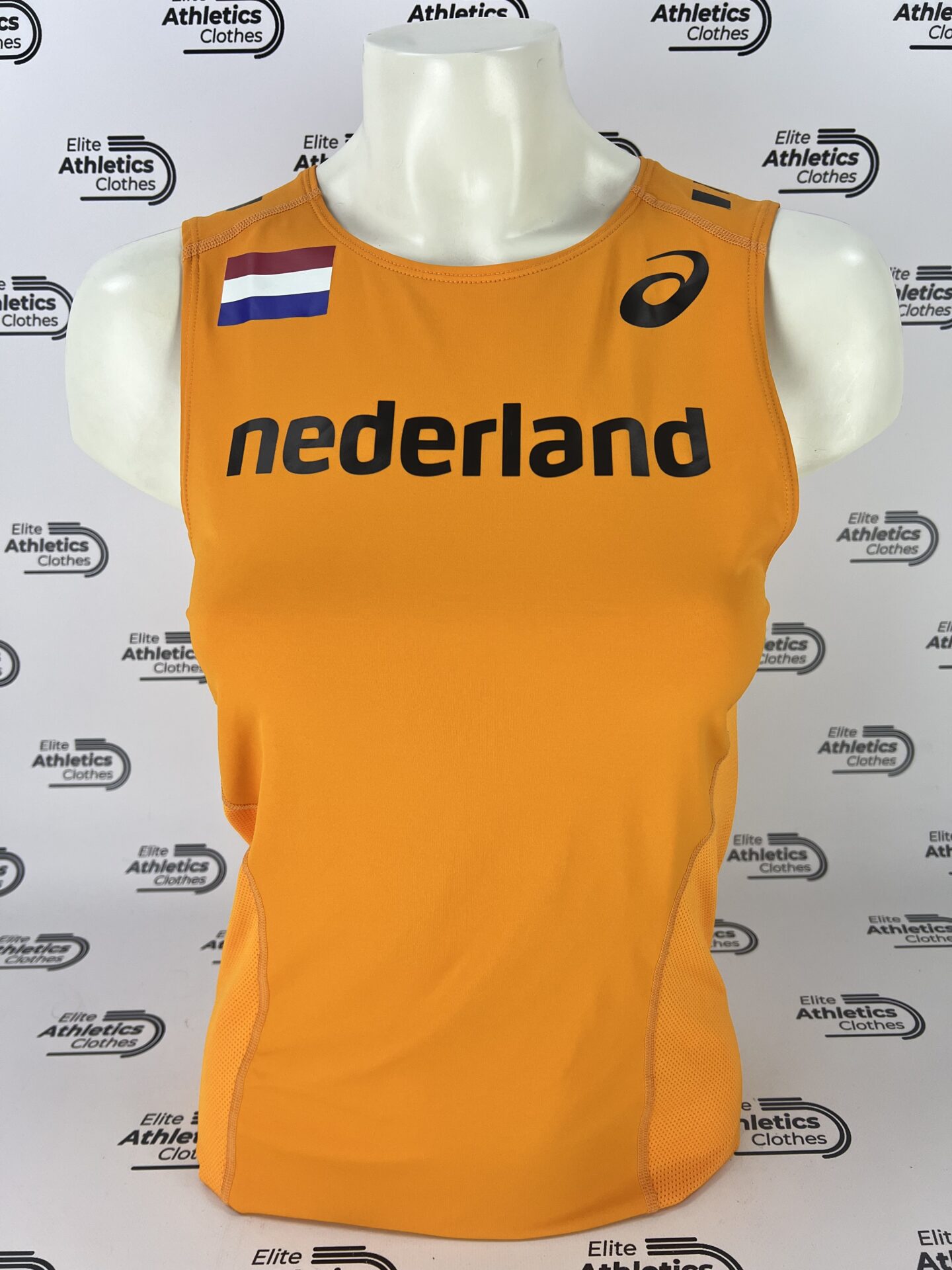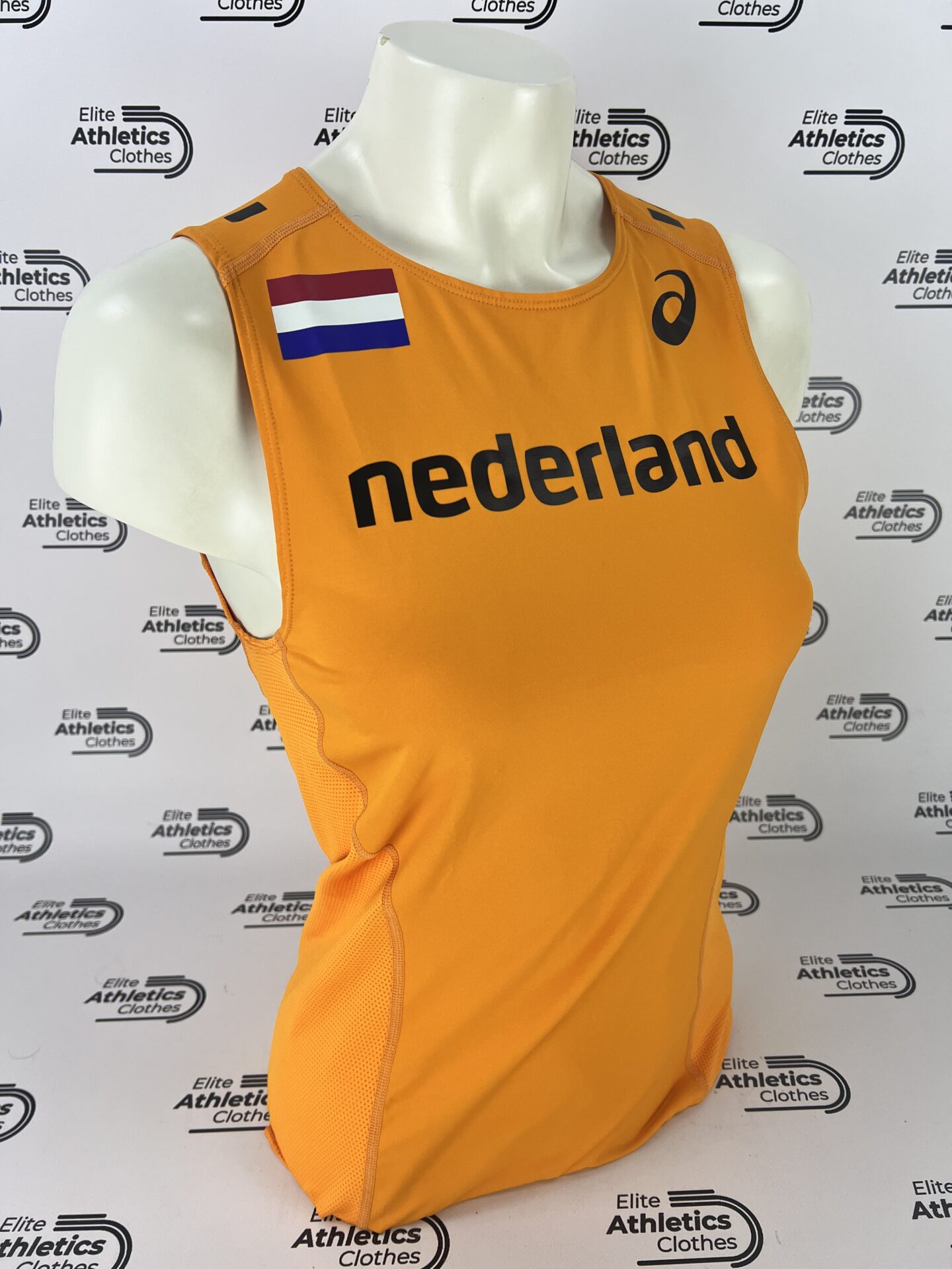 Asics Netherlands Pro Elite 2016 Women Distance Singlet worn by Netherlands International Team athletes during the 2016 season.