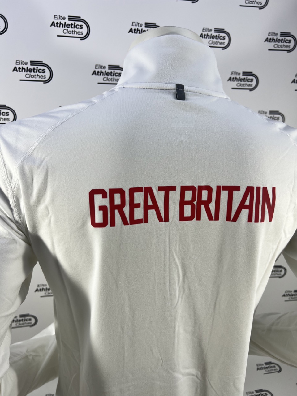 Nike Great Britain Pro Elite 2019 Half Zip Jersey worn by Great Britain Team Pro Athletes during 2019 season.