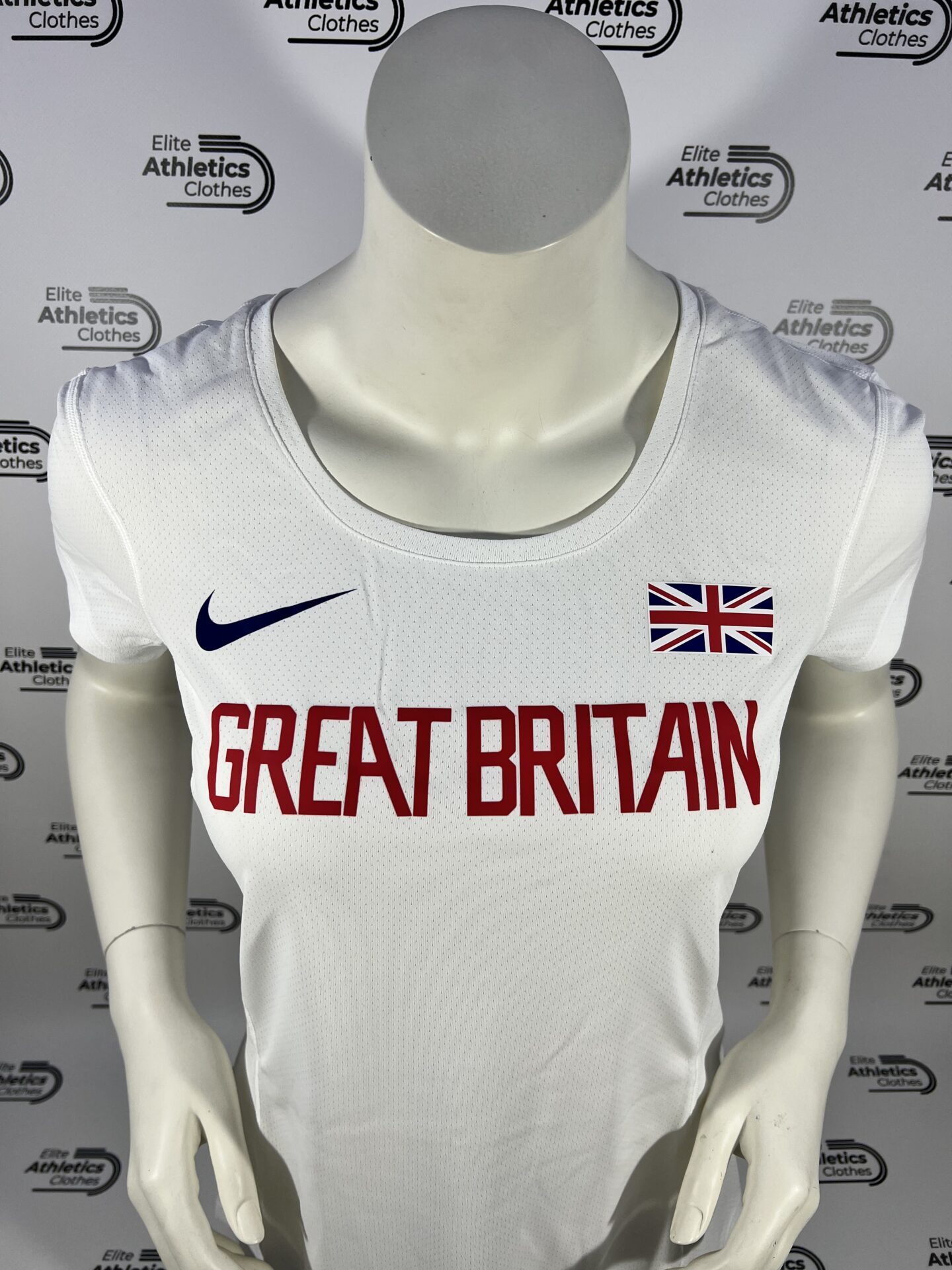Nike Great Britain Pro Elite 2019 Women T-Shirt worn by Great Britain Team Pro Athletes during 2019 season.