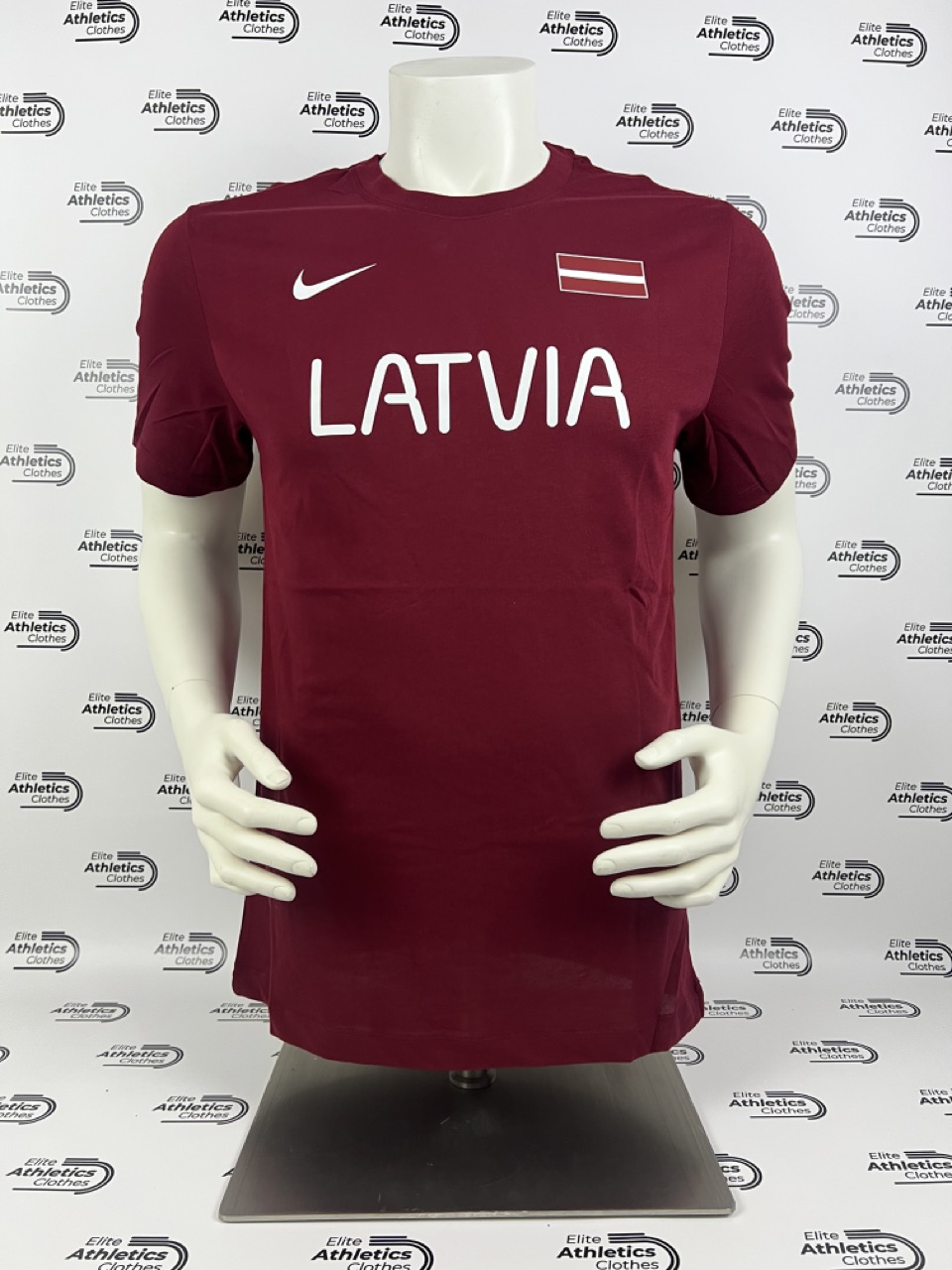 Nike Latvia International Team 2024 Pro Elite T-Shirt worn by Latvia International Team athletes during the 2024 season.