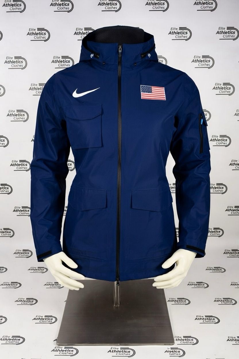 Nike USA Pro Elite 2023 Women Storm Jacket worn by the USA Track & Field Team international athletes during the 2021, 2022 and 2023 seasons.